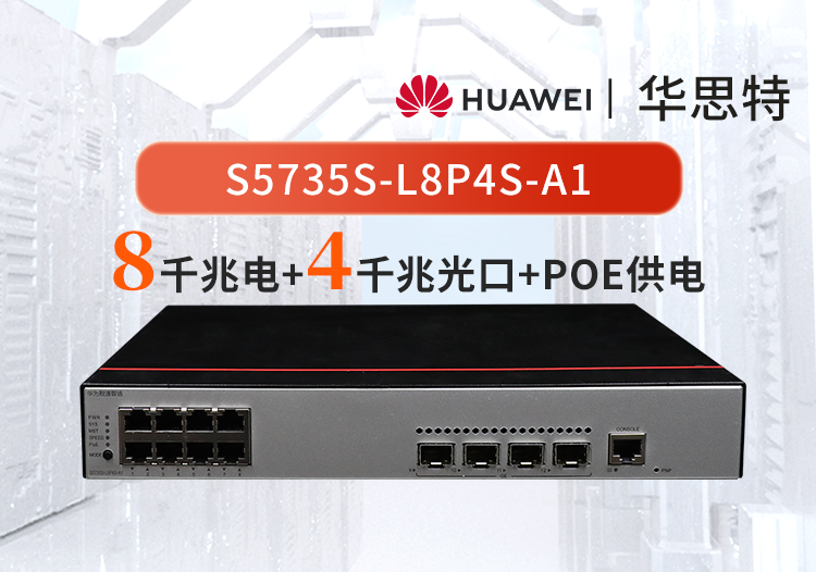 S5735S-L8P4S-A1(8個(gè)10/100/1000BASE-T以太網(wǎng)端口,4個(gè)千兆SFP,PoE+,交流供電),交換容量336Gbps/3.36Tbps,包轉(zhuǎn)發(fā)率27/102Mpps,POE功率124W